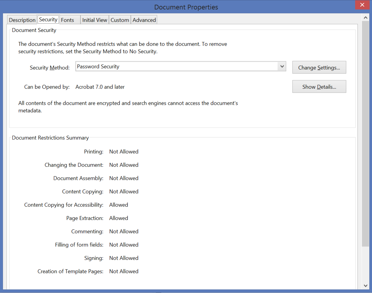 Causa C: Il documento è protetto o protetto da una password. Un file PDF può essere influenzato da due tipi di password, entrambe facoltative. Un documento PDF può essere protetto da una o due password, oppure può non essere protetto da alcuna password. Per i file PDF, le password sono chiamate anche password. Opzioni per l'assegnazione della password: